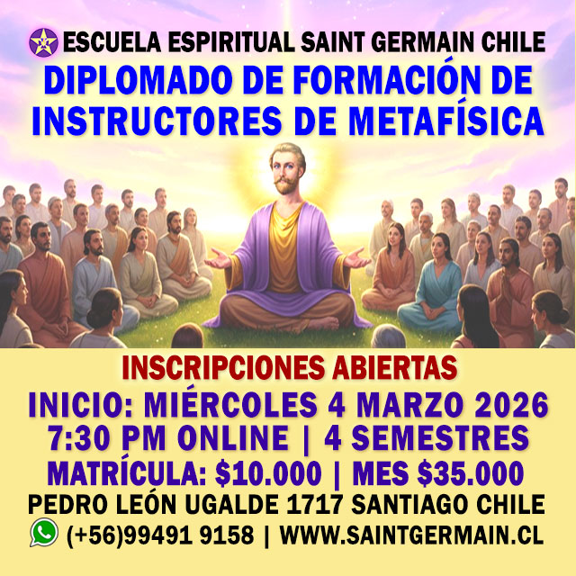 CURSO DE FORMACIÓN DE INSTRUCTORES DE METAFÍSICA | Inicio: Miércoles 4 de Marzo de 2026 7:30 pm | Duración 4 semestres | Online | Inscripciones abiertas | Cupos limitados | (+56) 994919158 | www.saintgermain.cl